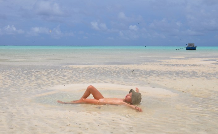 Bakom femte luckan i vår julkalender döljer sig ännu en bild på vår dotter Lovis. Här på Helen Island i Mikronesien. En ensam liten atoll, på hundratals sjömil från närmaste land. Ön, som inte var större än vi kunde gå runt den på tio minuter, är en av de vackraste platser vi någonsin besökt. Lovis ser verkligen ut att njuta av stunden. Det är bra, det gäller att passa på. För snart kommer ön att slukas av havet.