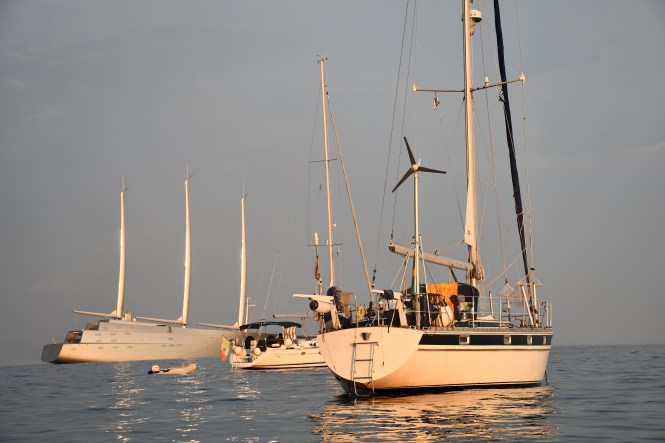 Inte var dag man delar ankarvik med världens största segelbåt.