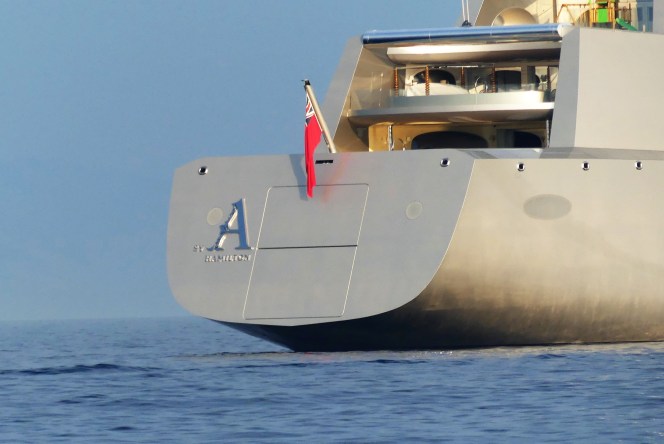 Vi kunde läsa om A i svenska media förra året, först när hon passerade Öresund och senare när hon togs i beslag av Kronofogden i Gibraltar för att varvet menade att ägarens Bermuda-flaggade företag inte gjort rätt för sig. Nu är hon tydligen på fri köl igen.