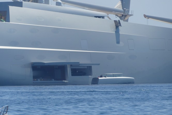 Ombord på A ska tydligen finnas flera pooler, och en helikopterplatta. I skrovsidorna finns stora luckor, där bakom gömmer sig allehanda farkoster. På akterdäck finns en stor lekplats. Men det som imponerar mest på Otto är uppgiften om ett undervattensobservatorium för socialt bruk. Ett sällskapsrum med 30 cm tjockt glas ingjutet i kölen.