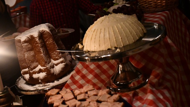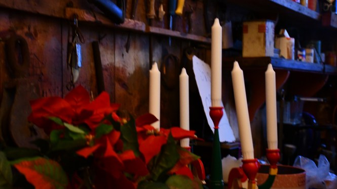 Otto drabbas av matkoma redan efter sillen. Jo, vi gillar ju sill i vår familj och det blir lätt lite mycket om man måste smaka alla 17 sorter. Men när jag bäddar ner honom bland fårskinnen i gamla rökeriet, på lagom avstånd från godis-bordet, så ser han ändå rätt nöjd ut. Det är inte utan att man blir lite sugen på att göra honom sällskap.