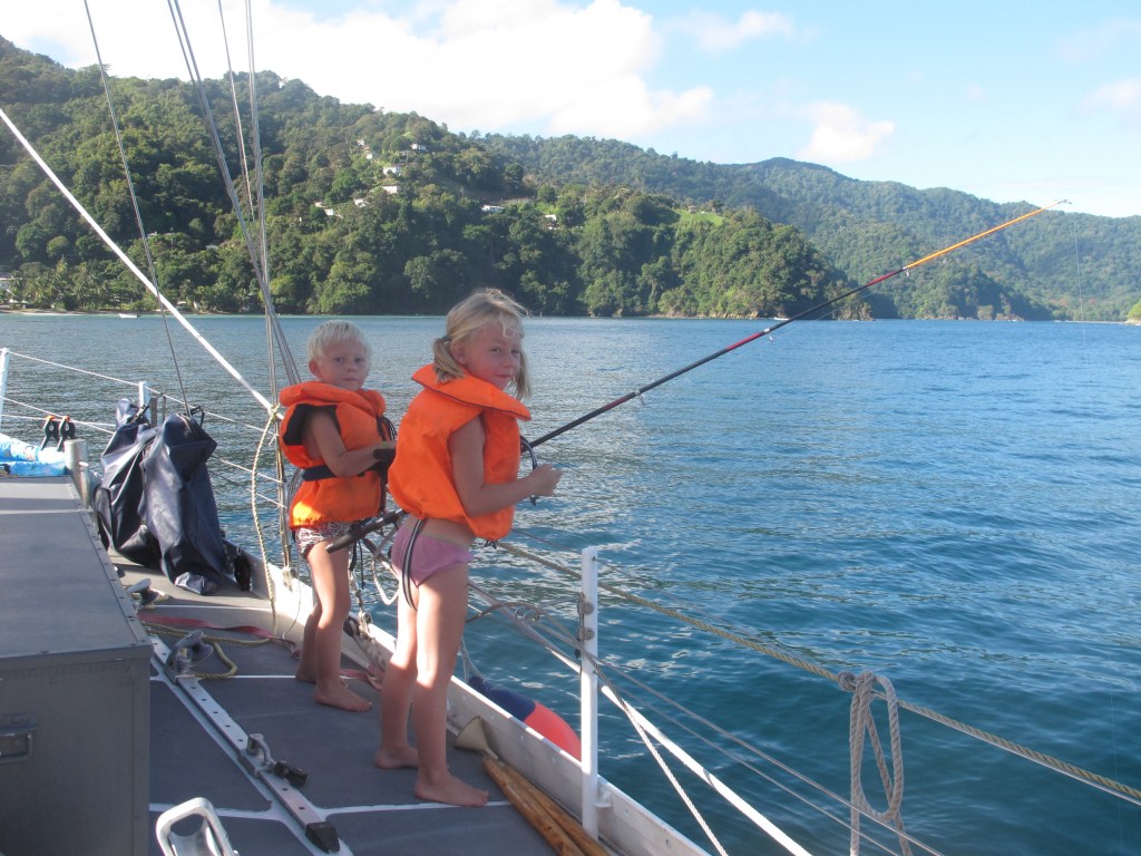 Lovis och hennes lillebror provar fiskelyckan på ankarviken i Tobago 2011. Nu är hon vegetarian 🙂