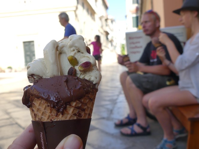 Vi hade några vänner med oss, så det blev skytteltrafik med jollen några vändor innan vi slutligen lyfte upp den på land och klättrade upp i den grönskande ravinen. Lovis och hennes kompis Tilda sprang före, studsade upp mellan stenblocken som bergsgetter.