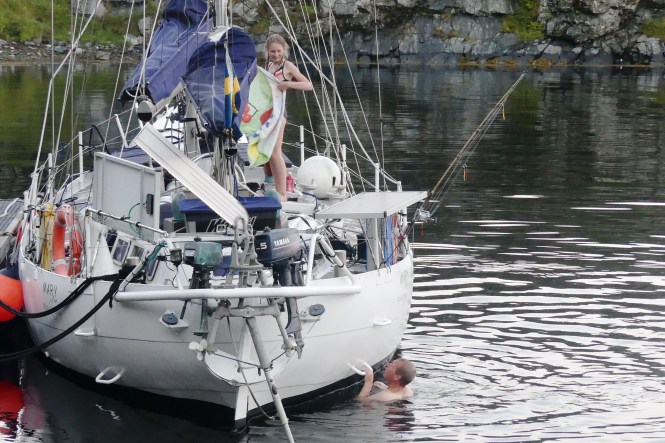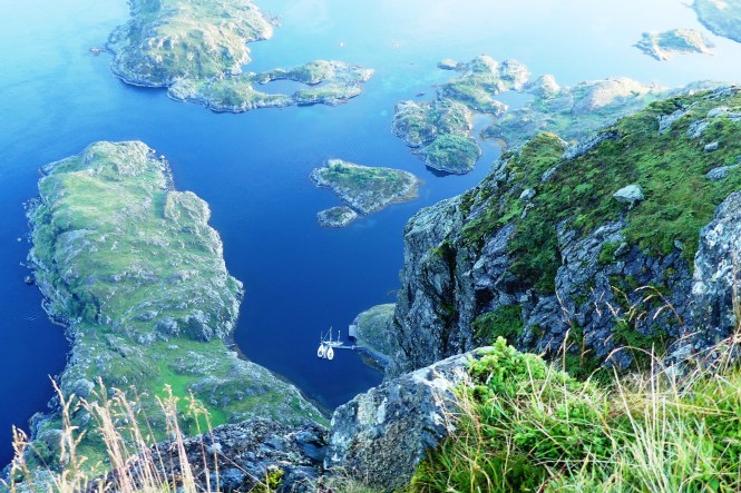 ”Det är som om Alden inte vill ha oss”, muttrade en sjöblöt Ludvig från sittbrunnen medan jag var inne och letade på sjökortet efter en lämpligare hamn i busvädret. Vi hamnade istälet på en annan ö lite längre in i fjorden, men redan nästa dag bestämde vi oss för att gå tillbaka till Alden. Vinden hade lagt sig, och det utlovades sol framåt eftermiddagen. Förhoppningen var att bestiga toppen.