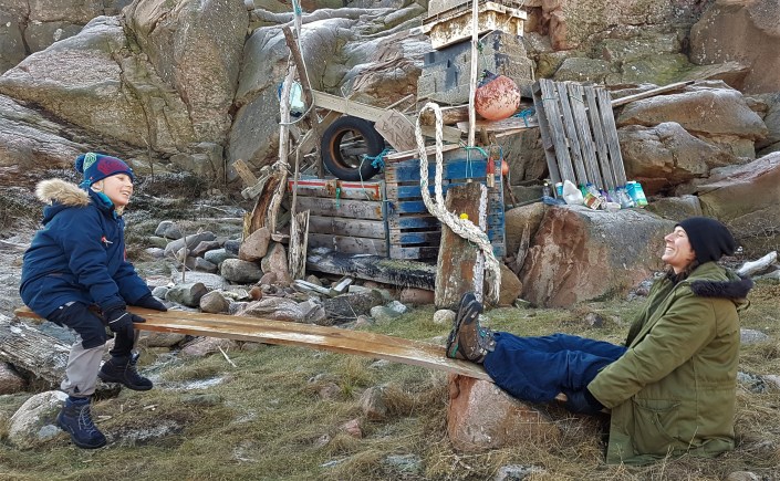 LILLA KORNÖ, BOHUSLÄN. Vi bygger i timmar. Ett hus av sten och en koja av drivved. En bar, en skoaffär och en lekplats. Vi bygger av det som vinterns stormar spolat iland. Vi bygger av det vi hittar i naturen. Hittegods från fjärran länder. Flaskor och dunkar från Holland och England, fiskeutrustning från Yttre Hebriderna. Drivved, vrakgods och allehanda sopor. Udda skor i det oändliga. De ligger i drivor. Övergivna, och väderbitna. Gammalt skräp som sätter fantasin i rörelse, och kommer till glädje igen.