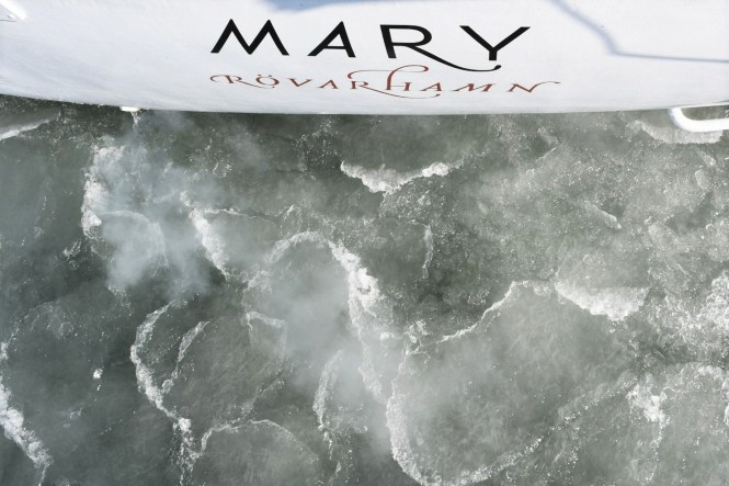Vi är stolta som tuppar över Mary. Vi har visserligen gått igenom is förut, men aldrig så här långt.  Jag är så upprymd att jag måste skratta. Det är fram tills jag upptäcker röken vill säga. Tjock vit rök som väller ut från skrovsidan. Bekymrad lutar sig Ludvig ut över relingen, och får sina farhågor bekräftade. Inget kylvatten, bara rök.