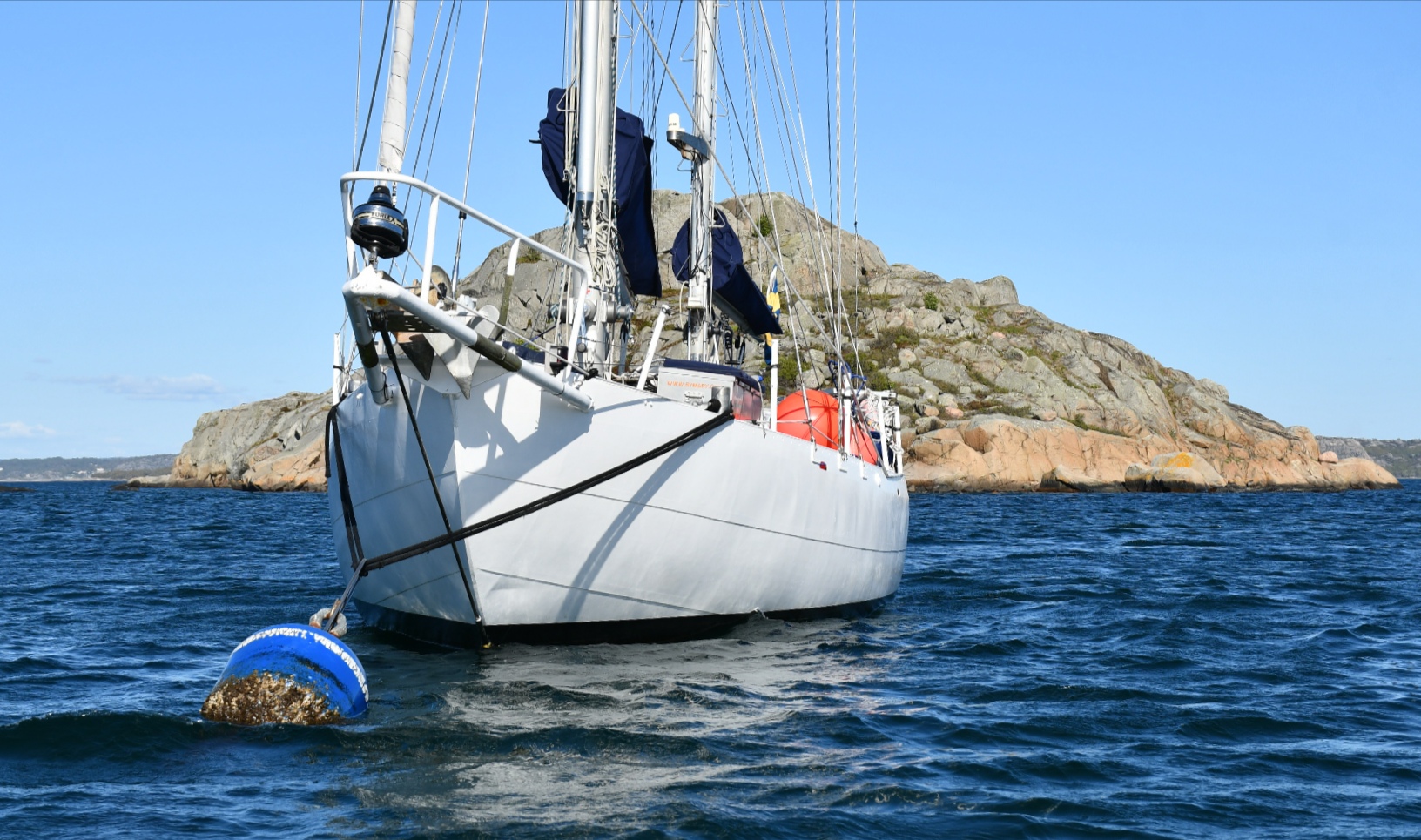 Vi förtöjer Mary i Kryssarklubbens boj vid Krokholmen.