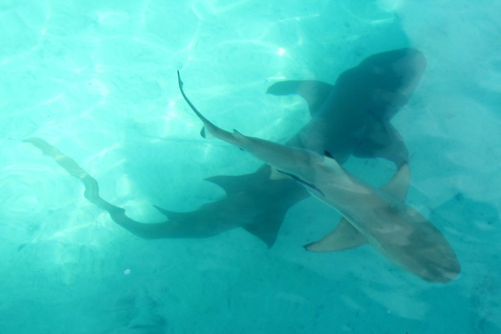 I en skyddad liten vik upptäcker vi de mest bedårande små hajar. Ett helt hajdagis, som Otto uttrycker det. Vi står kvar och tittar på dem länge, inga vuxna syns till. En kokosnöt dunsar ner några meter från Ottos huvud. Jag tänker en tacksamhetens tanke, den här gången också. Fallande kokosnötter lär vara världens vanligaste dödsorsak. Men Otto verkar mer glad än förskräckt. Kokosnötter är utmärkta törstsläckare.