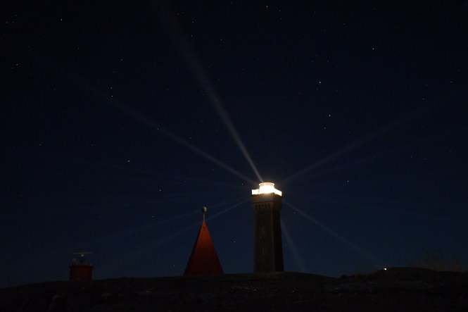 Vår morgon är desto finare. Havet ligger nästan stilla, solen skiner och vi har en lätt medström på en halv knop. Jag väcker barnen när vi närmar oss. De är synnerligen morgontrötta av sig, särskilt Lovis som kommit in i tonåren. Hon muttrar surt. Vad är det för fyr som är så viktig att man måste stiga upp redan klockan nio på sommarlovet? Den ligger ju inte ens på vägen.