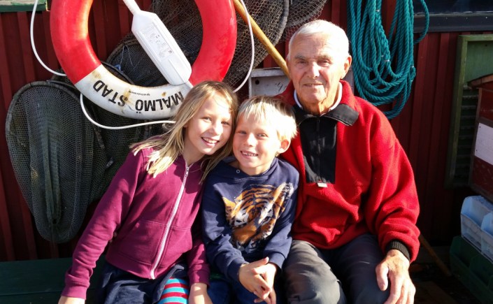 Jag hade tänkt skriva och berätta tidigare, men har inte orkat. Så Sydsvenskan hann före och kondelanserna har börjat trilla in. Men för er som inte vet. Vår älskade fiskargubbe Ove, som jag skrivit om så många gånger tidigare här på bloggen, har lämnat oss. Han blev tragiskt påkörd hemma i Limhamn i måndags och avled i tisdags till följd av skadorna. Ni som vet vad han betydde för oss förstår hur ont det gör, och det är extra tungt att se barnens sorg, men vi får göra så gott vi kan och söka tröst i minnena från alla fina stunder vi haft tillsammans.