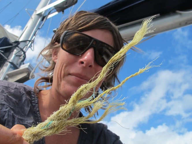 Jag anropar kustbevakningen i hopp om att någon vänlig själ har lust att göra en insats. Det visar sig vara ett misstag. Amerikanarnas radioapparater sänder inte på samma frekvenser som de europeiska, och när vi väl hittat en gemensam radiokanal där jag kan framföra mitt ärende föreslår kvinnan i andra änden att vi ska kontakta ett privat bärgningsbolag. Jag ser dollarsedlarna rulla, och tackar för ingenting. Jollen försvinner allt längre bort. Vi måste lösa det här själva.
